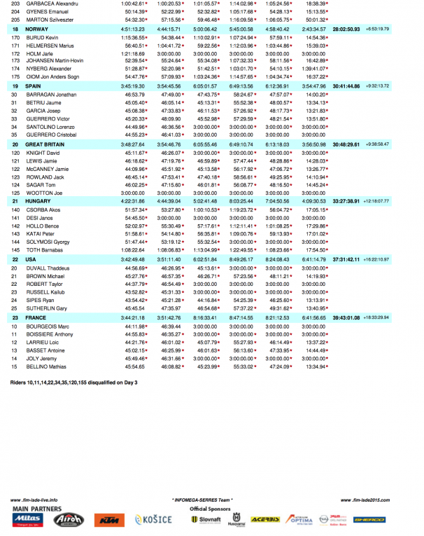 The 2015 ISDE World Trophy team podium is now Australia first, Italy second and Finland third.