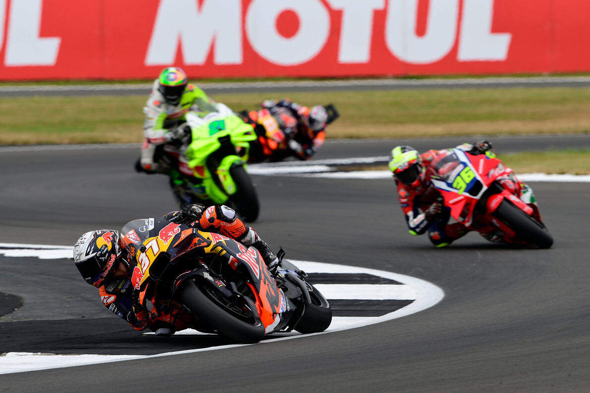 So düpierte im Vorjahr der inzwischen eine KTM pilotierende Maverick Viñales mit seiner Aprilia im Sprint die so dominante Staffel Borgo Panigale, im Rennen feierten Jorge Martín und Enea Bastianini dann einen Ducati-Doppelsieg. Aber: Dahinter platzierten sich gleich drei Bikes aus Mattighofen.