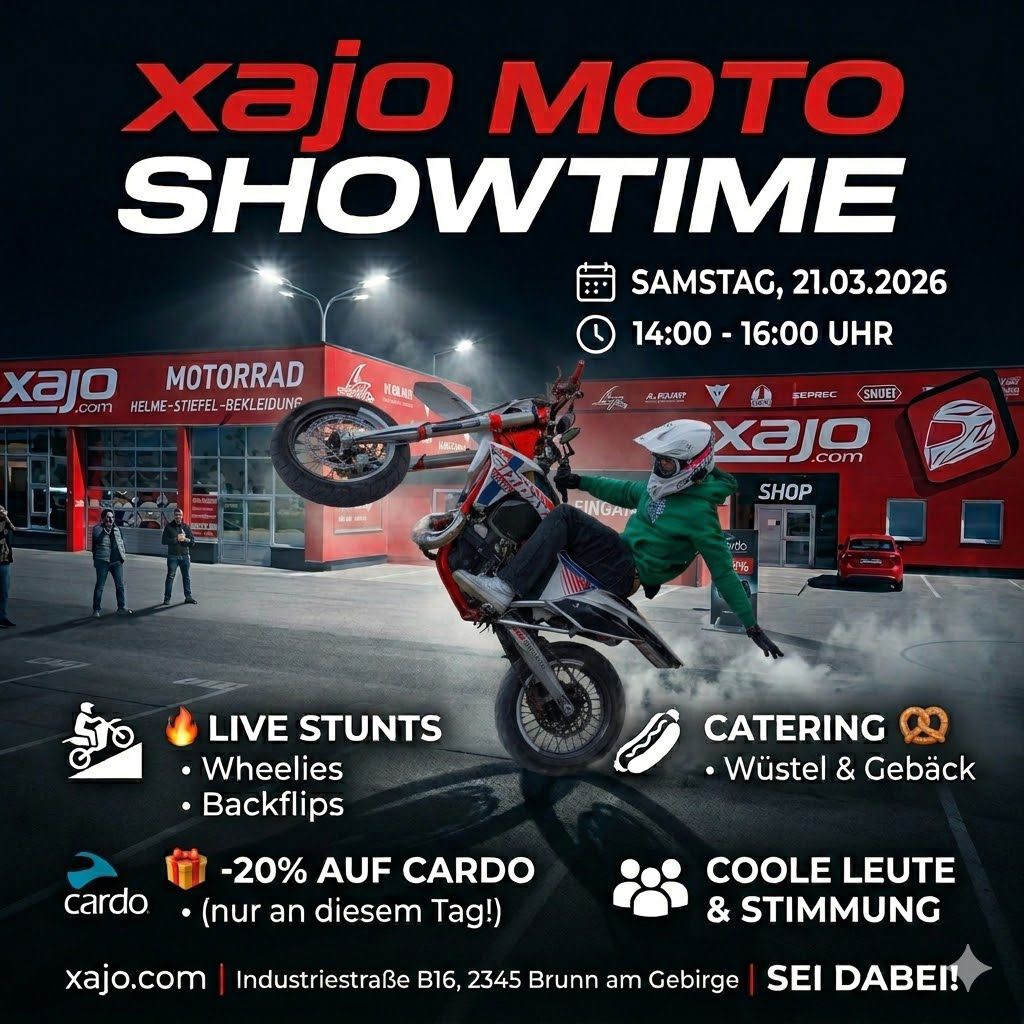 Am 21. März werden Samy und seine Freunde eine Stuntshow abliefern - die Stuntshow ist von 14.00 bis 16.00. Die Cardo Aktion mit minus 20% gibt es natürlich den ganzen Tag! Zusätzlich gibt es gratis Würstel und Getränke solange der Vorrat reicht.