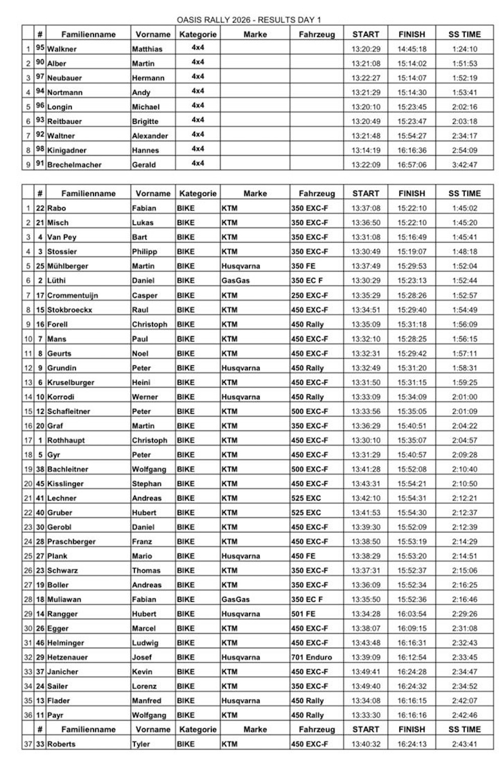 ERGEBNISSE KINI OASIS RALLYE 2026 - TAG 1 ALLE BERICHTE ZUR KINI-OASIS-RALLYE >>>