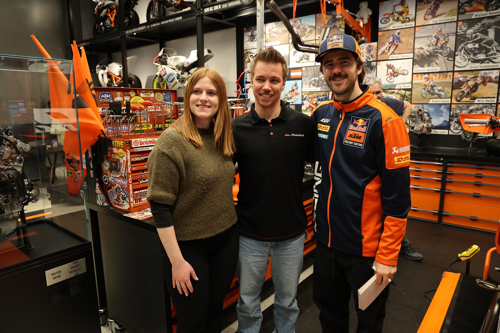 Bereits bei früheren Auftritten als Publikumsliebling gefeiert, bestätigte Lettenbichler auch diesmal seinen Ruf als sympathischer und nahbarer Ausnahmeathlet. Der Tech-Talk war bewusst interaktiv gestaltet – statt Frontalvortrag stand der direkte Austausch im Mittelpunkt. Die Gäste nutzten die Gelegenheit, Fragen zu stellen und mit dem Profi sowie der Mechanikerin der der KTM Motohall ins Gespräch zu kommen.