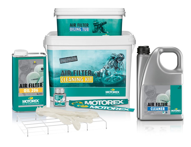 Die Reinigung der Luftfilter erfolgt im AIR FILTER CLEANER Tauchbad, die danach fällige Oelung mit AIR FILTER OIL 206. Beide Produkte wurden im MOTOREX Labor in der Schweiz einer gründlichen Überarbeitung unterzogen. Die aktuellen Gebinde sind erkennbar am neuen Label, auf dem auch eine genaue Gebrauchsanweisung zu finden ist.