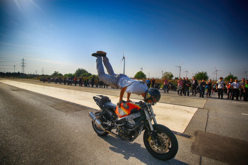 Auch dieser tätowierte Herr vom Handling Parcour kennt sein Gashand Feeling sehr genau.